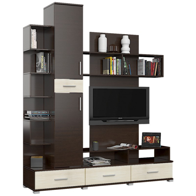 Корпус и фасады стены выполнены из экологически чистого ЛДСП (уровень эмиссии Е1) швейцарской компании Kronospan.