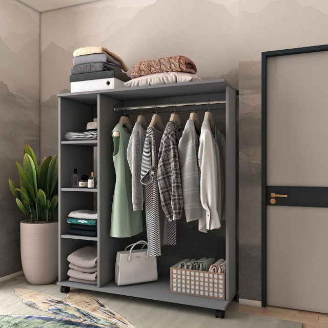 - Четыре полки для удобного хранения одежды и аксессуаров
