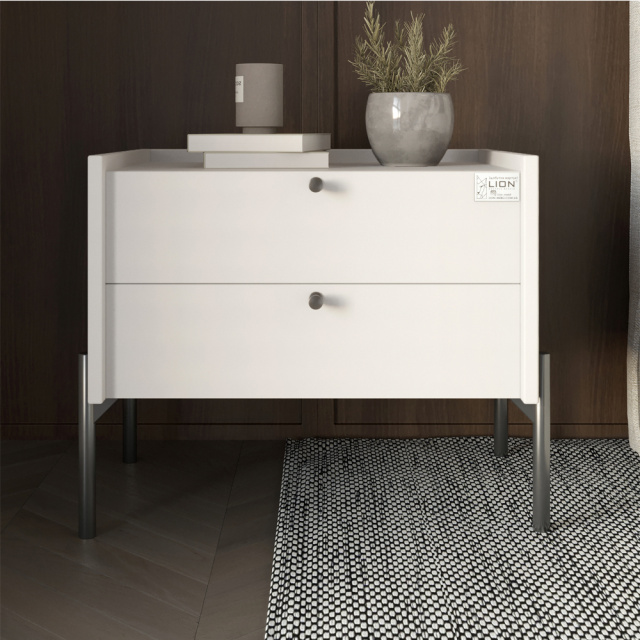 Прикроватная тумба LION Wood с двумя ящиками Нимфея Альба (белый) (черные ножки) (LION-041358)