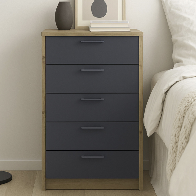Ищете идеальное решение для организации пространства? Комод Doros Ронди в цвете Дуб Артизан с графитовыми акцентами – это идеальный выбор для вашего интерьера. Благодаря пяти вместительным ящикам, вы сможете с легкостью хранить вещи в порядке, а стильный дизайн придаст элегантность любой комнате. Размеры 60х40х100 см делают его универсальным, подходящим как для спальни, так и для гостиной или кабинета.