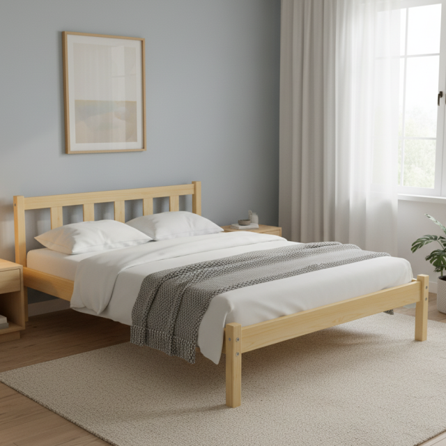 Кровать изготовлена из качественного дерева и покрыта прозрачным лаком, что подчеркивает натуральную текстуру материала. Размер 160х200 см позволяет наслаждаться комфортом во время сна, а прочная конструкция гарантирует надежность и долговечность. Вы можете быть уверены, что эта кровать прослужит вам много лет.