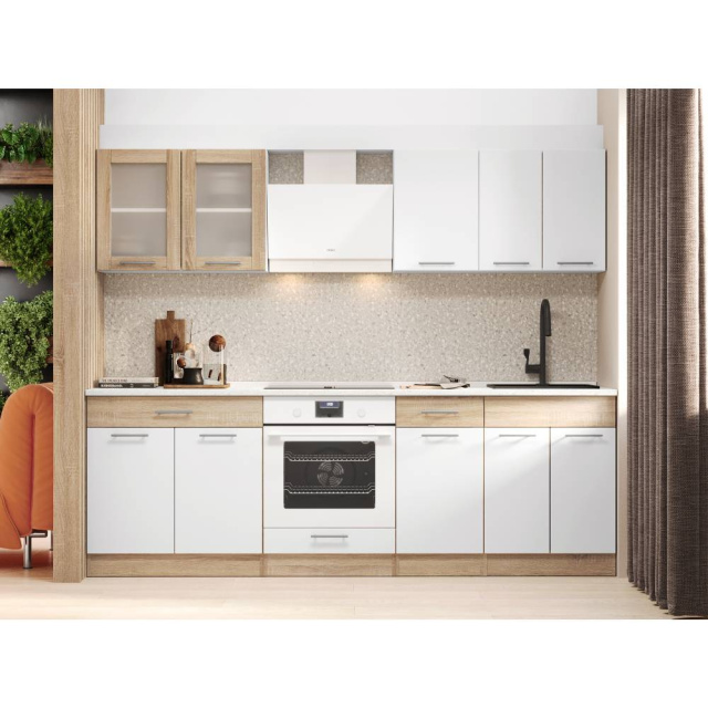 Ваша кухня – это не просто место для приготовления пищи, а настоящий центр домашней жизни. Модульная кухня Эверест Эко в цветах дуб сонома и нимфея альба (белый) создает атмосферу уюта и современного стиля, превращая любое пространство в функциональную и эстетическую кухню. Благодаря своей универсальной конструкции, этот набор легко впишется в интерьер любой квартиры или дома. Благодаря столешнице Скай, длиной 2.4 метра, вы получите достаточно места для приготовления пищи и организации рабочего процесса. Высококачественные материалы обеспечивают долговечность и легкость в уходе, а современный дизайн позволяет наслаждаться каждым моментом, проведенным на кухне. Не упустите возможность сделать свою кухню не только красивой, но и практичной!