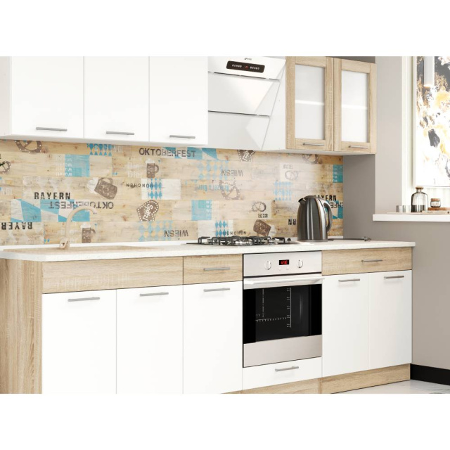 Этот набор длиной 2,6 метра включает все необходимое для удобного использования. Столешница Скай обеспечивает достаточно рабочей поверхности для приготовления блюд, а модульная структура позволяет легко адаптировать кухню под ваши нужды. Вы сможете организовать пространство так, как вам удобно, что делает приготовление пищи еще более приятным.